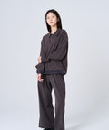 軽やかでなめらかな生地が、ストレスのない穿き心地を実現。ウエストはゴム+紐の仕様で、締めつけ感なく幅広い体型にフィット。ゆるやかなシルエットが自然な落ち感を生み、カジュアルにもモードにも馴染むデザイン。